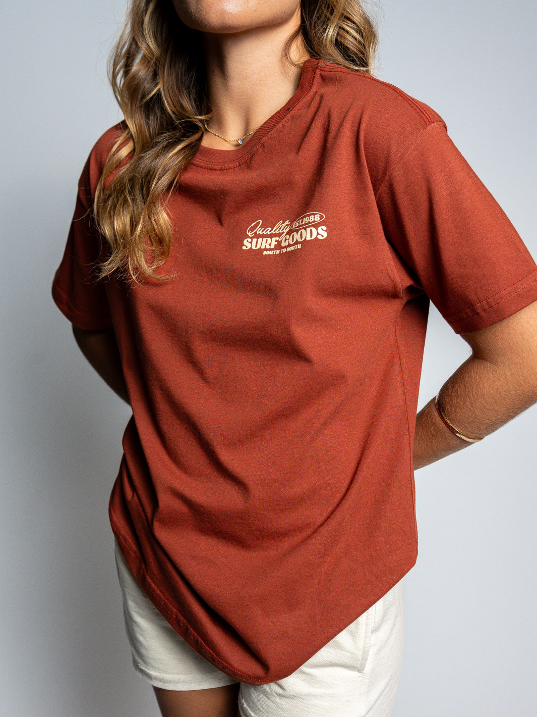 Camiseta "Quality Goods", produzida em nosso algodão ultra-macio.