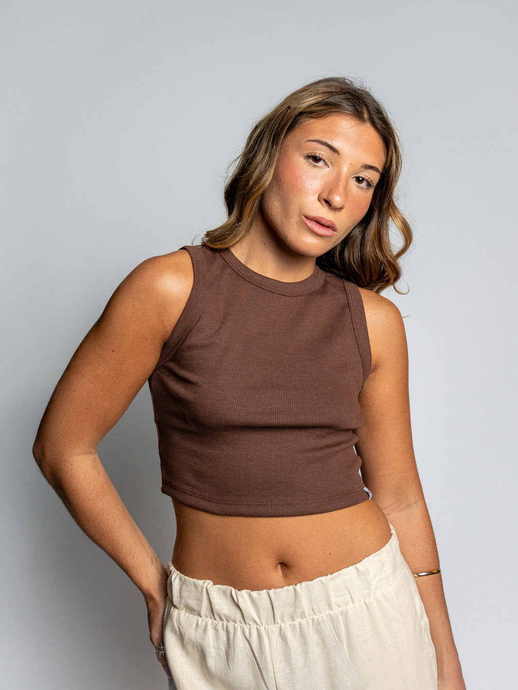 Cropped em ribana com modelagem regatinha.