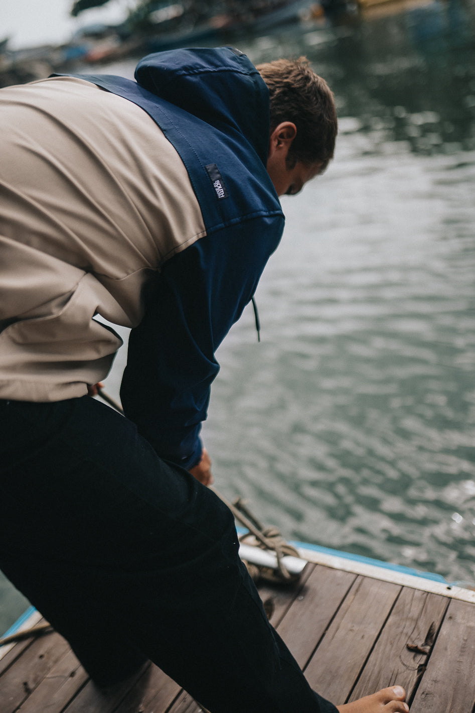 Confeccionada em microfibra com tecnologia repelente à água, ideal para mudanças rápidas de clima — da rua ao pós-surf.