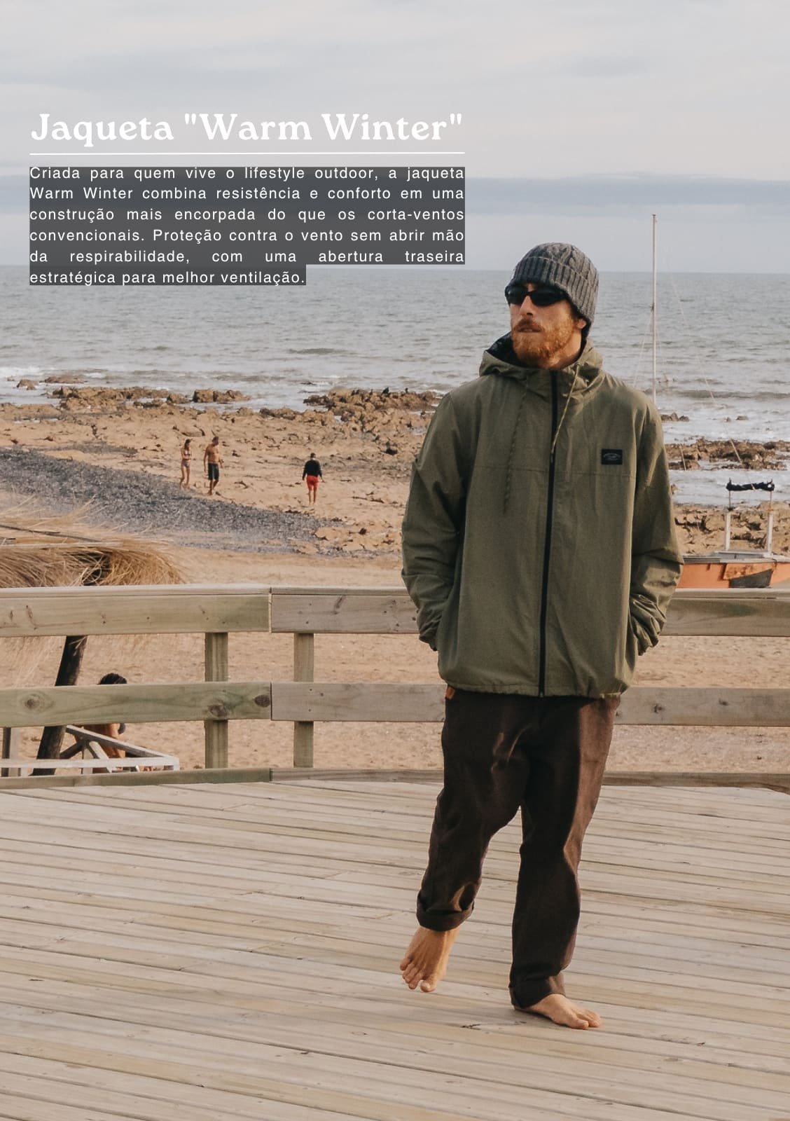 Criada para quem vive o lifestyle outdoor, a jaqueta Warm Winter combina resistência e conforto em uma construção mais encorpada do que os corta-ventos convencionais. Feita de microfibra premium (54% poliéster, 46% algodão), ela oferece proteção contra o vento sem abrir mão da respirabilidade, com uma abertura traseira estratégica para melhor ventilação.